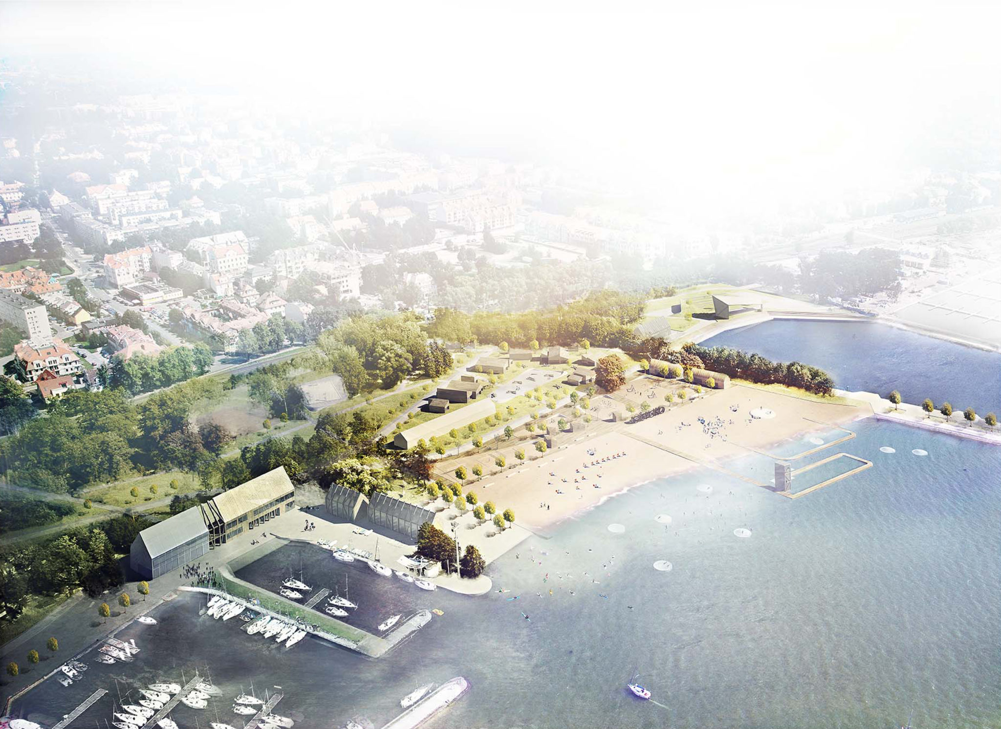na opracowanie koncepcji architektoniczno-urbanistycznej terenu plaży miejskiej w Giżycku wraz z międzyszkolną bazą sportów wodnych.