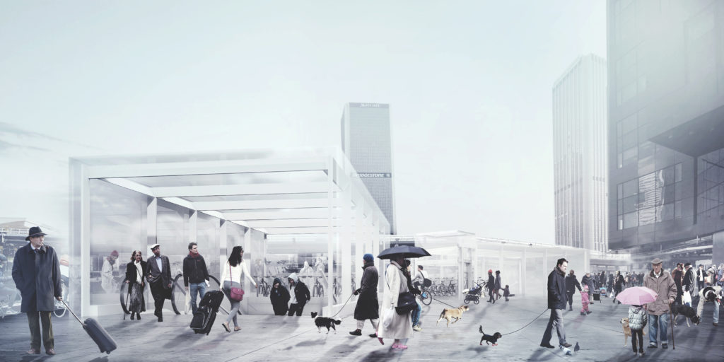 w konkursie architektonicznym na koncepcję modernizacji przejść podziemnych przy Dworcu Centralnym PKP w Warszawie. Organizator: Miasto Stołeczne Warszawa- Zarząd Dróg Miejskich, 2015 r.