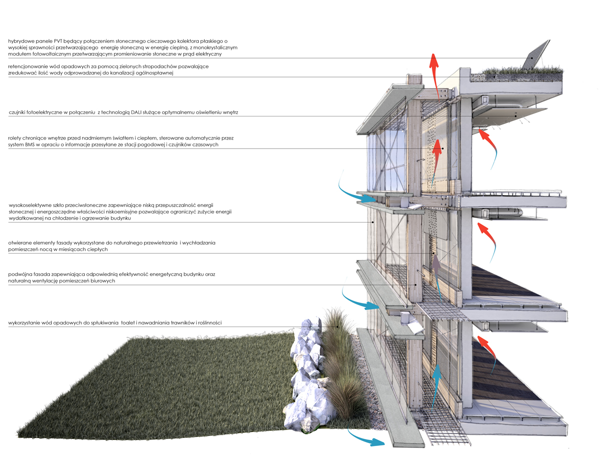 Nagrodę przyznano za czytelną dyspozycję przestrzenną i propozycję drugiej fasady kreującej współczesny i elegancki wyraz budynku biurowego