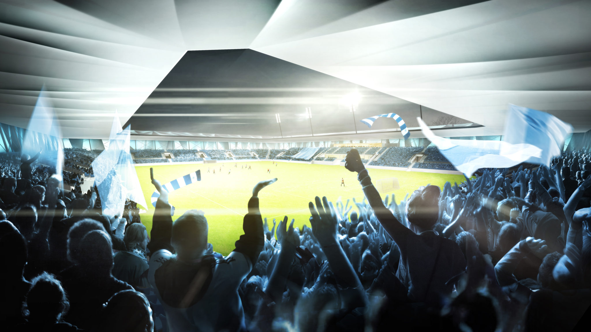 Miasto, jako stolica Warmii, przywołuje silne skojarzenia z krainą jezior i żeglarstwem. Przetransformowana forma żagli stanowi punkt wyjścia do kształtowania elewacji obiektu. Lekkość białych membran, ciętych brytów, dynamika kompozycji budzi skojarzenia ze startem regatowym czy żaglówkami migoczącymi na horyzoncie. Lustro wody przed stadionem poprzez odbicia płaszczyzn elewacji i świateł dodatkowo wzmacnia wrażenie lekkości i odniesień do krajobrazu mazurskich jezior. Główną intencją było stworzenie tożsamości obiektu spójnego z miastem. Nowy stadion ma być mocnym akcentem identyfikującym Olsztyn.