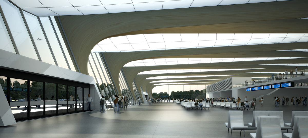 Forma budynku, miękkie, dynamiczne linie przekrycia lotniska inspirowane są naturą i wiatrem.