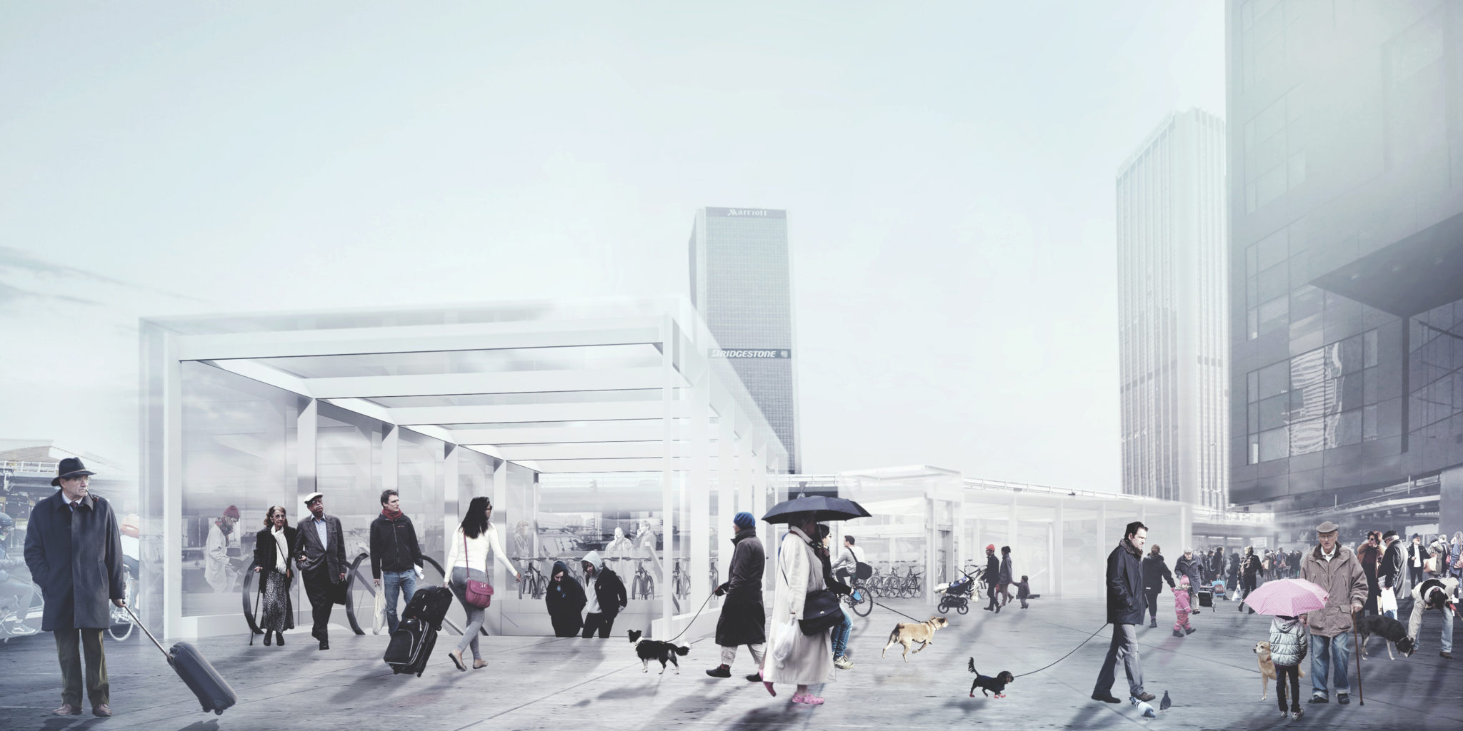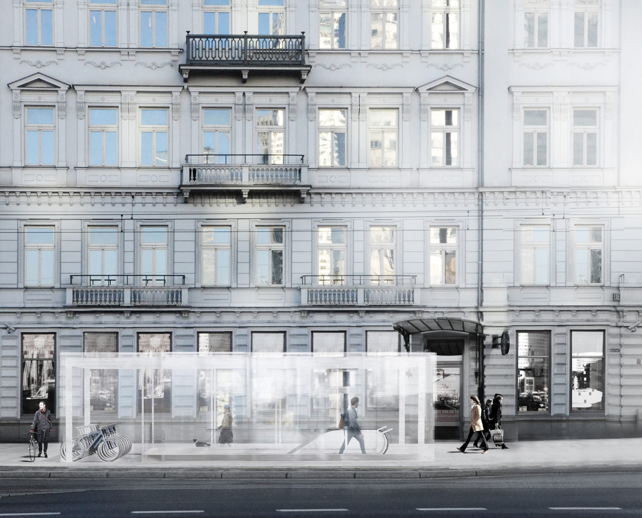 W rejonie skrzyżowania Alei Jerozolimskich i Alei Jana Pawła II znajduje się kilkanaście wyjść z przejść podziemnych, większość z nich przekryta jest zadaszeniami. Tak duża ilość obiektów oraz duża różnorodność elementów w centrum miasta sprawiają, że forma projektowanych zadaszeń powinna w sposób minimalny ingerować w przestrzeń ulicy. Dlatego też proponuje się oszczędną architekturę wejść do przejścia podziemnego, stosującą jedynie niezbędne elementy stalowej konstrukcji oraz szklanego przekrycia.